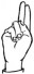 На ћирилици написано БОРИС МИЗДРАК састоји се из 12 слова [?]. Исписано ћириличном једноручном азбуком за глувонеме:
